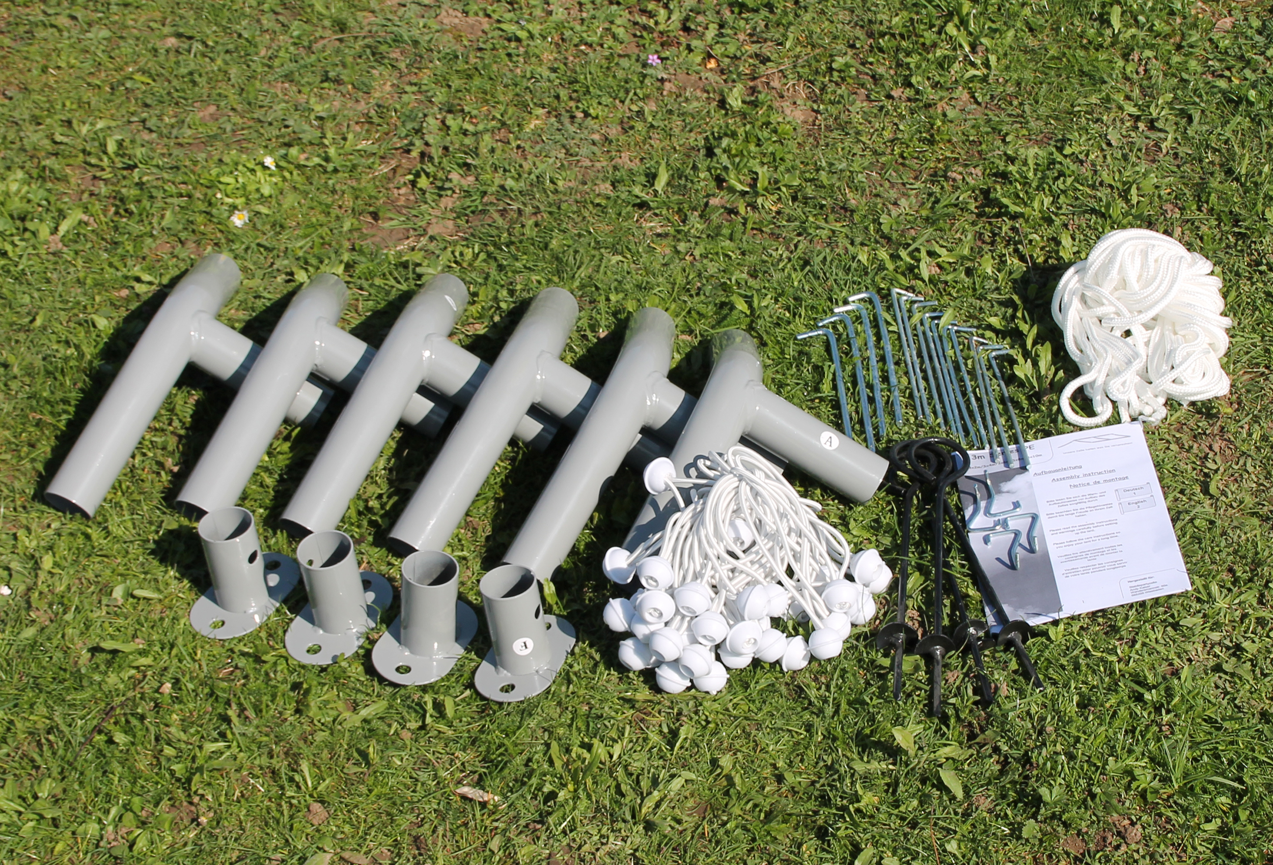 kein Werkzeug erforderlich - keine aufwendige Verschraubung - keine aufgeschweißten Muttern Abnehmbare Stahl-Fußplatten - mit beiliegendem Zubehör können diese im Boden verankert werden