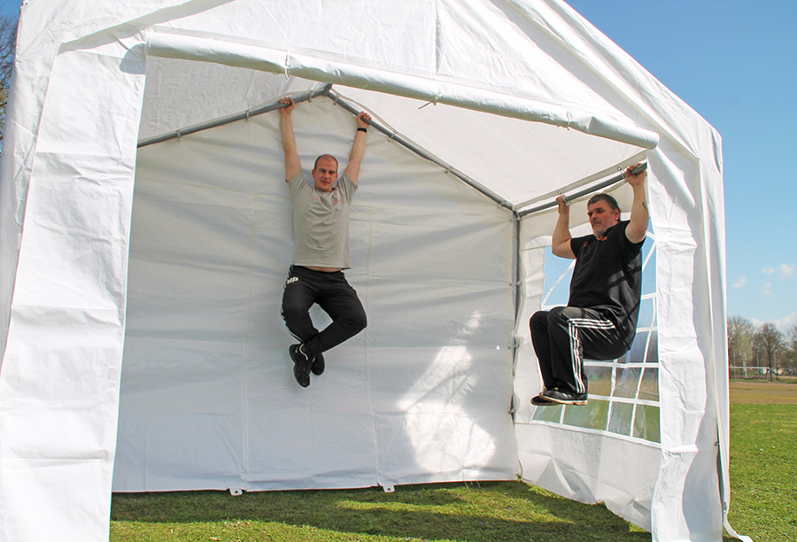 100 % wasserdicht - Alle Planen heiß verschweißtkein vernähtes PVC - keine tropfenden Nähte Robuste 400 g/m² Materialstärke der Dachplane und Seitenteile aus Premium PVC