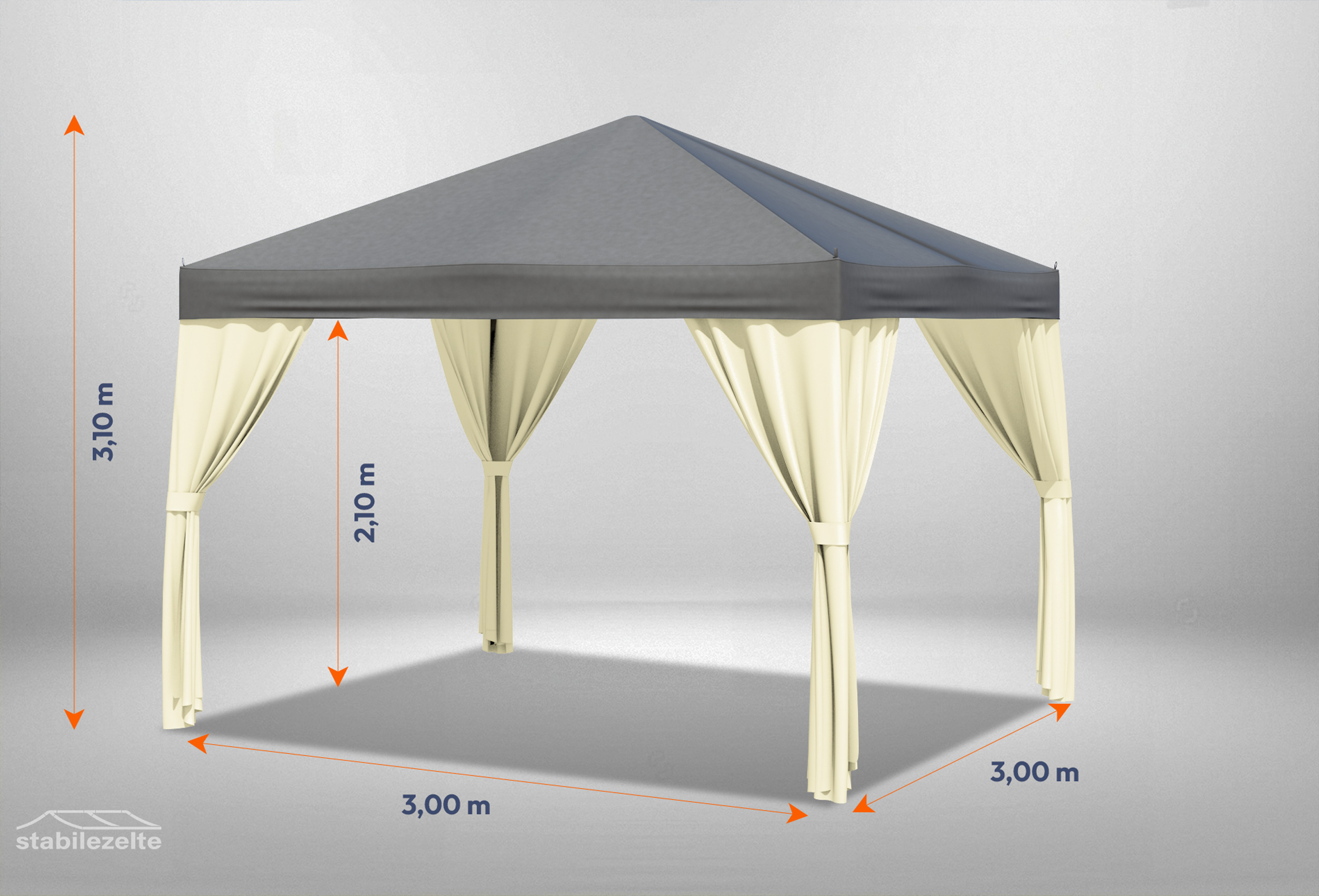 3x3 m Pavillon, Polyester PVC Sahara anthrazit