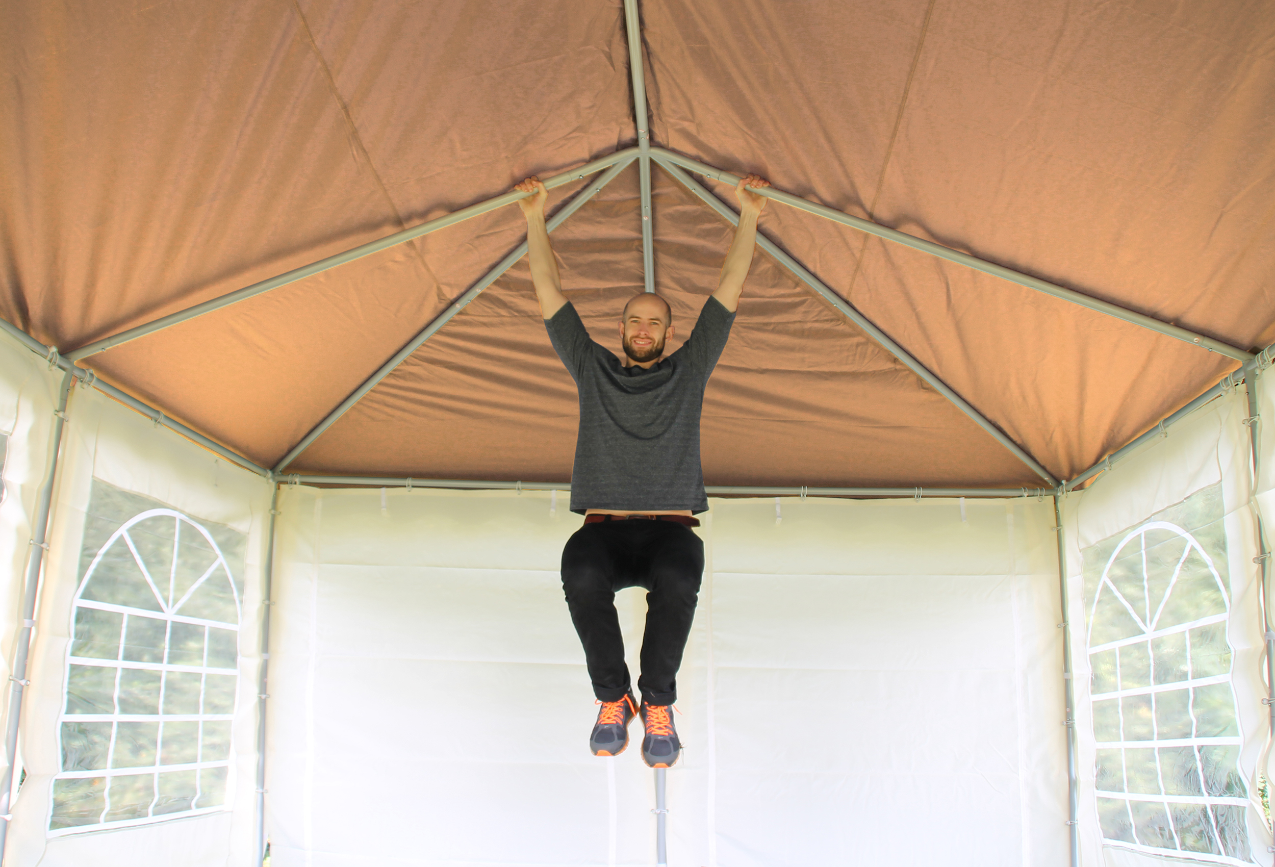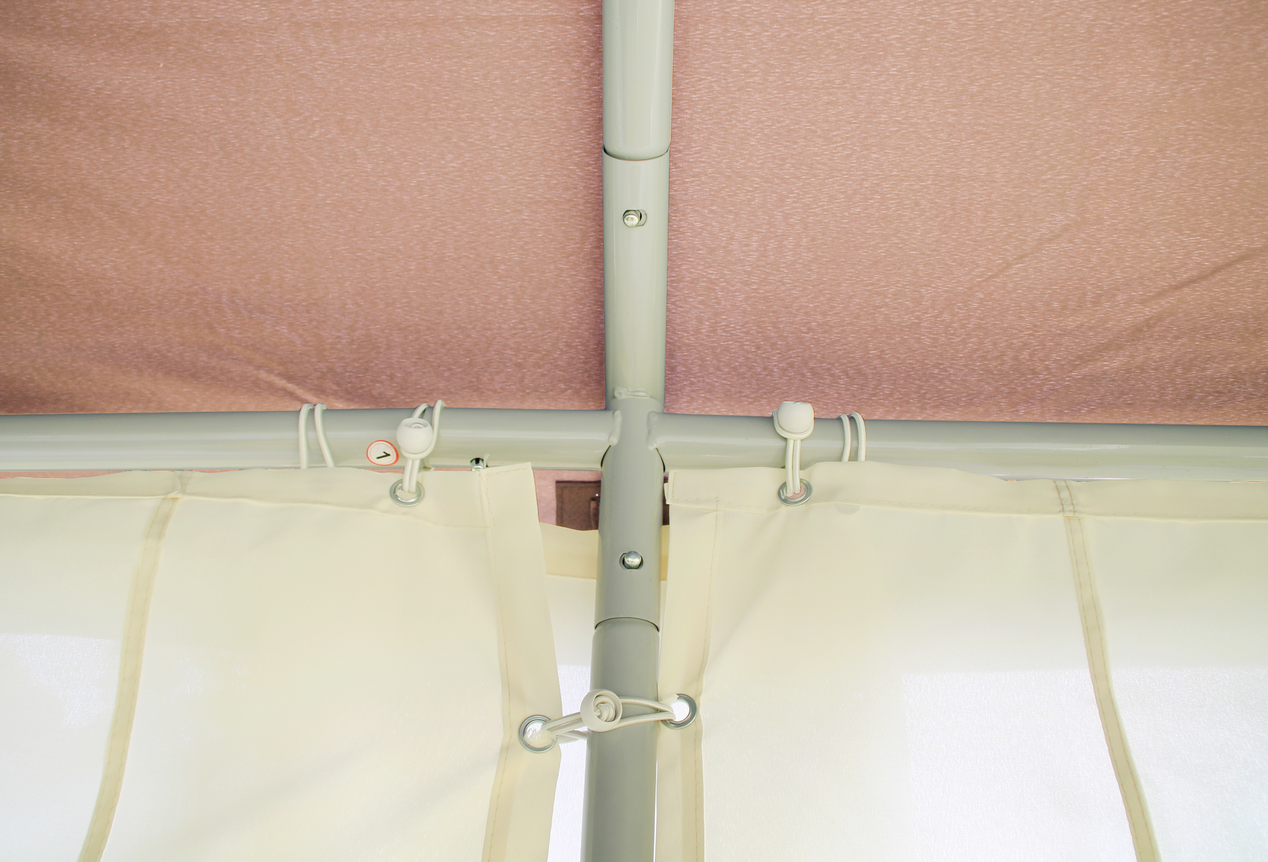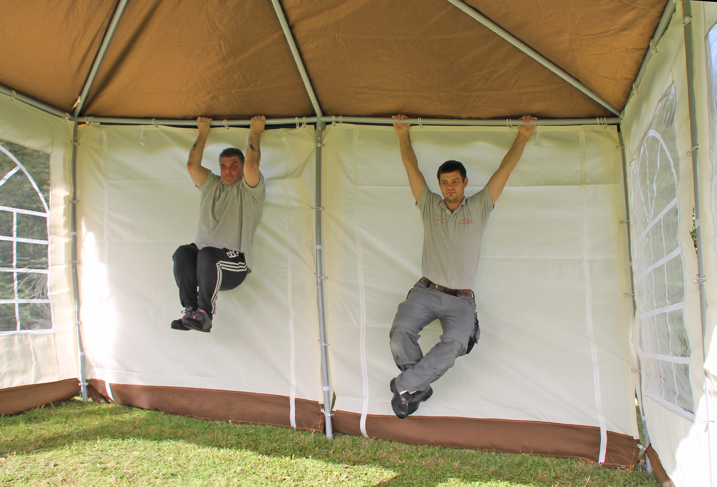 Dicke 38 mm Stangen und 43 mm Verbinder mit 1,0 mm und 1,2 mm Materialstärke aus massivem Stahlrohr Robuste und stabile Konstruktion mit hoher Seiten- und Mittelhöhe von 2,10 m und 2,80 m 5 Jahre Garantie5) gegen Durchrostung - bei 200°C eingebrannte und widerstandsfähige Pulverbeschichtung der fertig geschweißten Teilekeine einfache Rohmaterial-Verzinkung mit nachlackierten Schweißnähten - kein Ölfilm oder oxidiertes Zink Stabiles Klicksystem - schnell im Aufbau und durch hohe Materialstärken super stabil und einfach in der Handhabung