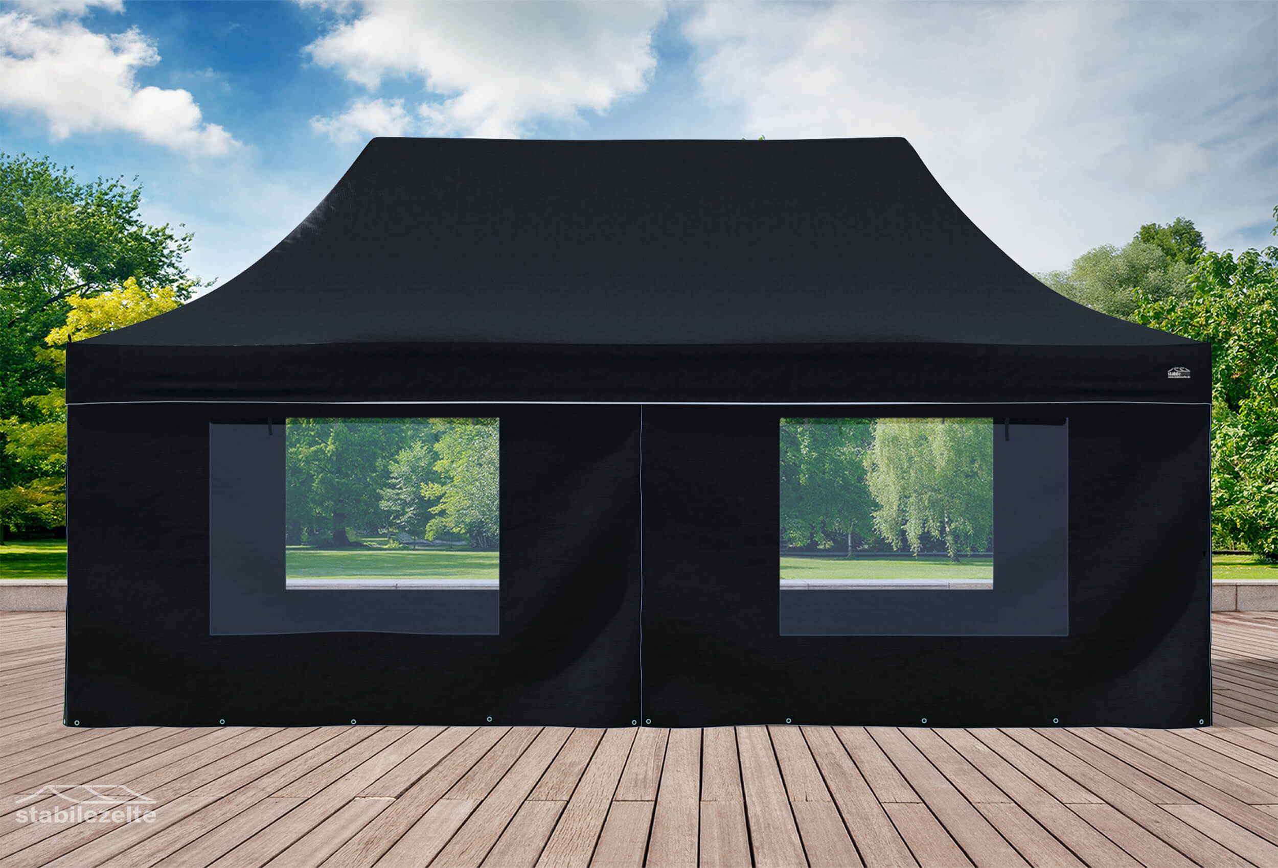 3x6 m Faltpavillon, PVC feuersicher schwarz