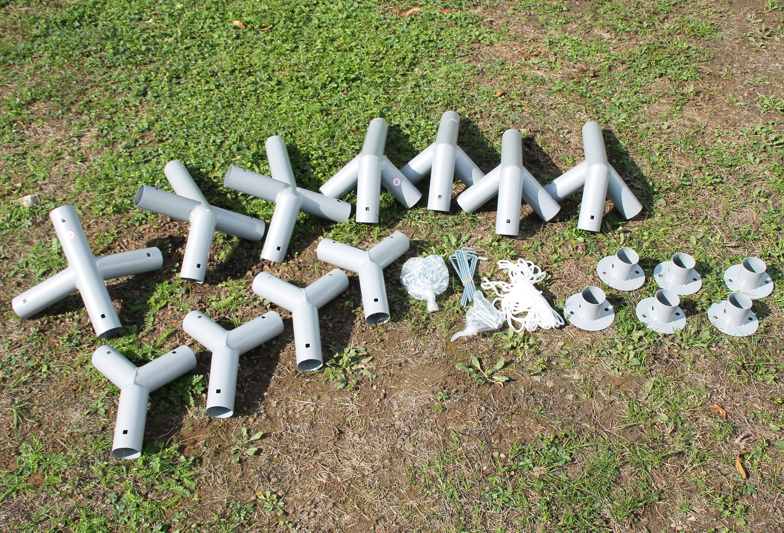 Dicke 50 mm Stangen und Verbinder mit 1,4 mm Materialstärke aus massivem Stahlrohr Robuste und stabile Konstruktion mit hoher Seiten- und Mittelhöhe von 2,10 m und 3,10 m 5 Jahre Garantie5) gegen Durchrostung - bei 200°C eingebrannte und widerstandsfähige Pulverbeschichtung der fertig geschweißten Teilekeine einfache Rohmaterial-Verzinkung mit nachlackierten Schweißnähten - kein Ölfilm oder oxidiertes Zink Robuste Sicherung des Gestänges mit Bolzen und Muttern Abnehmbare Stahl-Fußplatten - mit beiliegendem Zubehör können diese im Boden verankert werden