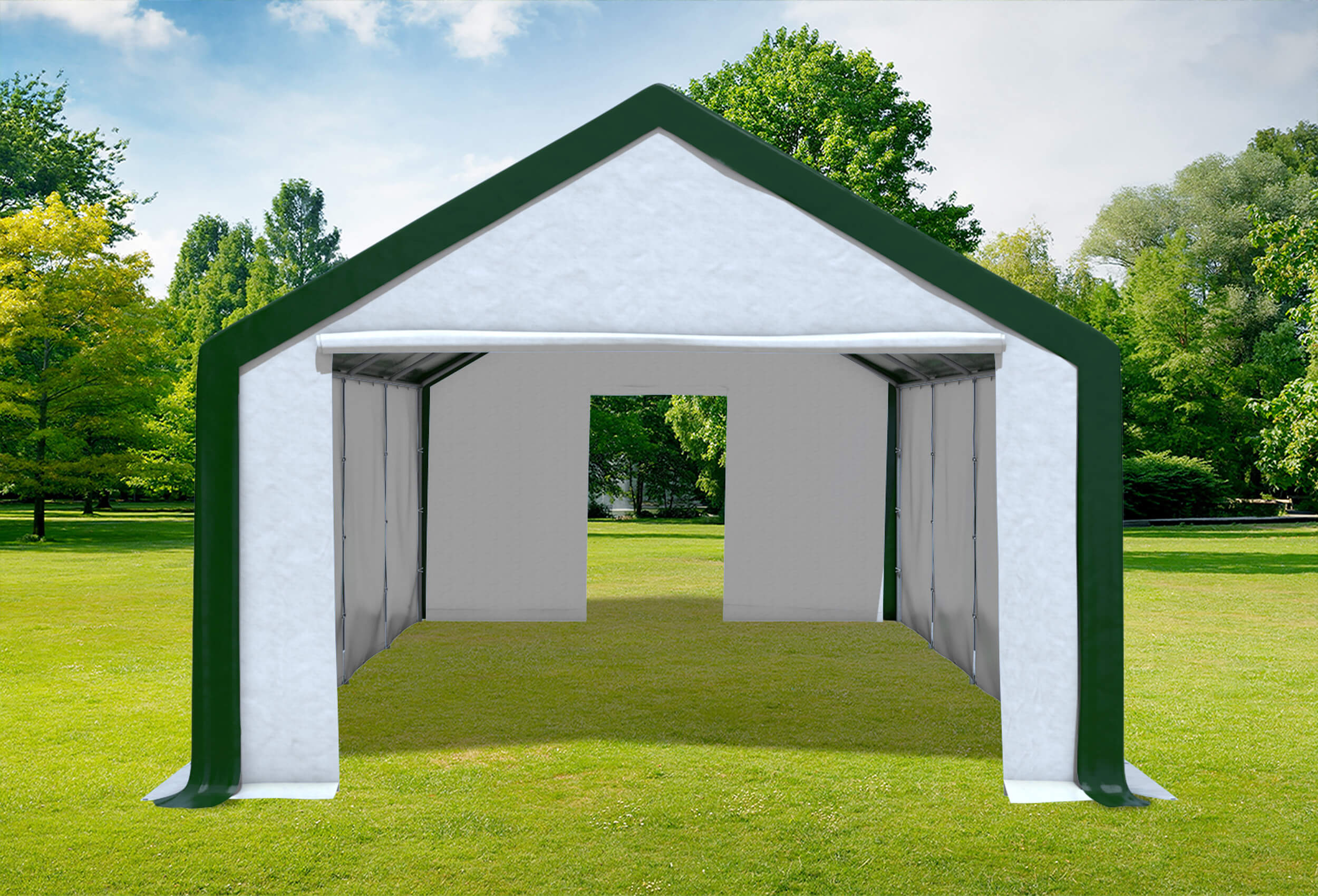 4x8 m 2in1 Kombizelt mit extra 4x4 m Dach, PVC grün weiß