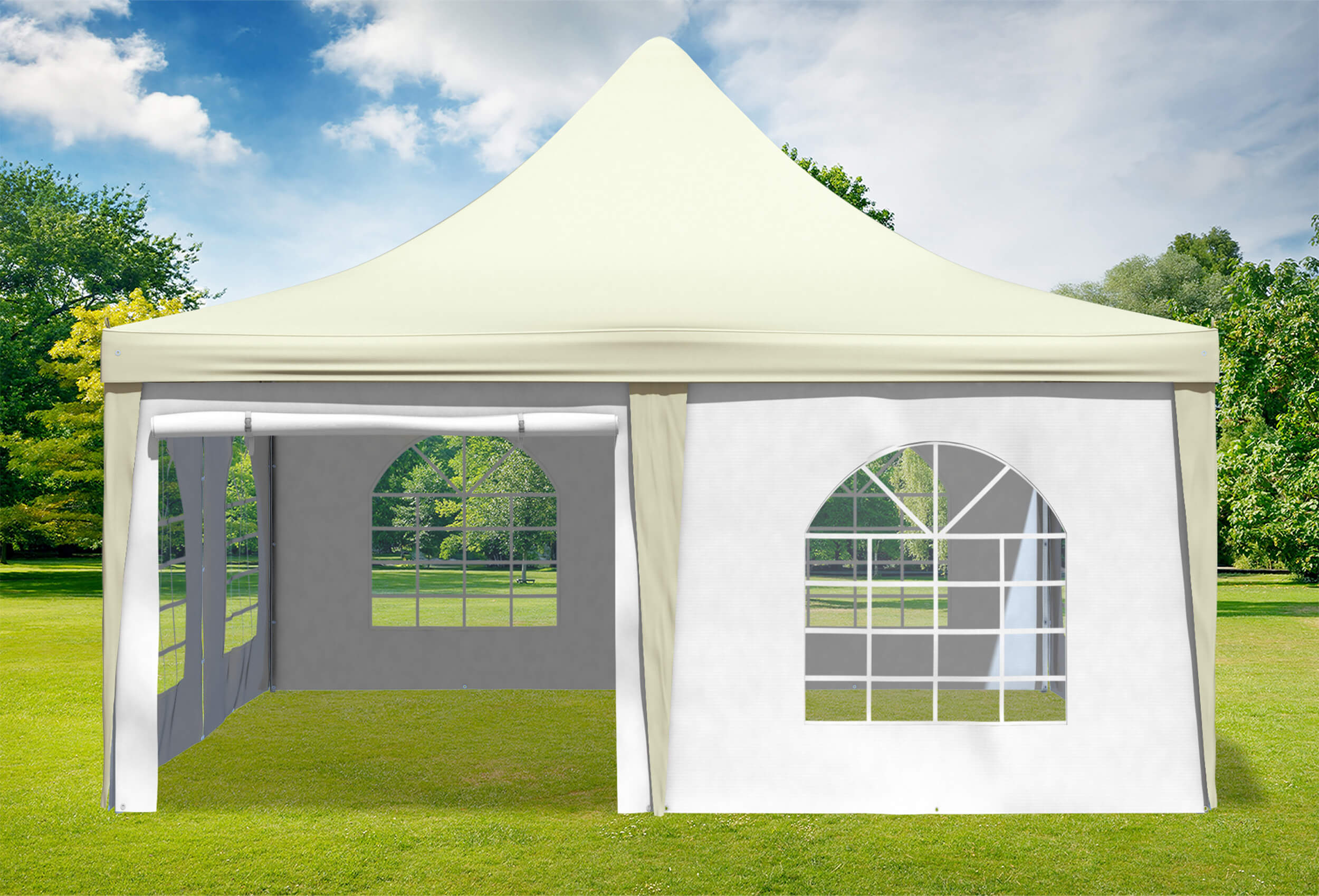 für regelmäßige oder dauerhafte Nutzung Echte 400 g/m² Materialstärke der Dachplane und Seitenteile aus Premium PVC