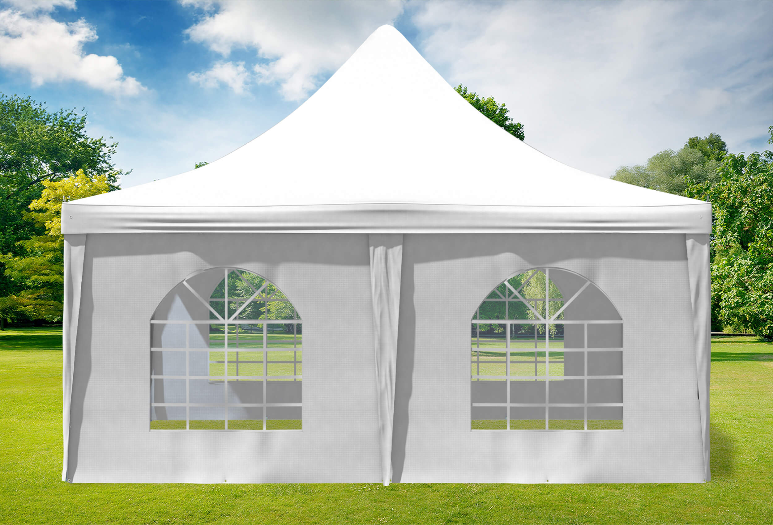 für regelmäßige oder dauerhafte Nutzung Echte 400 g/m² Materialstärke der Dachplane und Seitenteile aus Premium PVC
