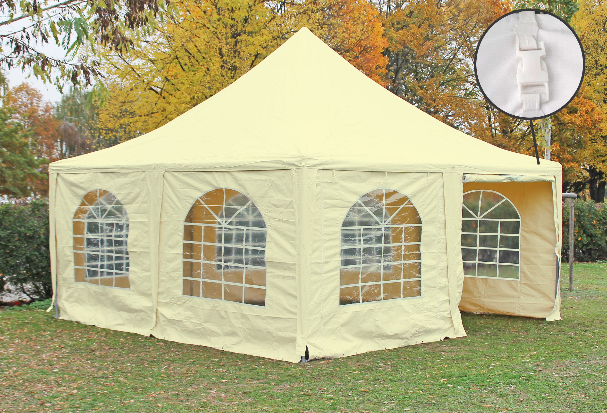 für regelmäßige oder dauerhafte Nutzung Echte 400 g/m² Materialstärke der Dachplane und Seitenteile aus Premium PVC