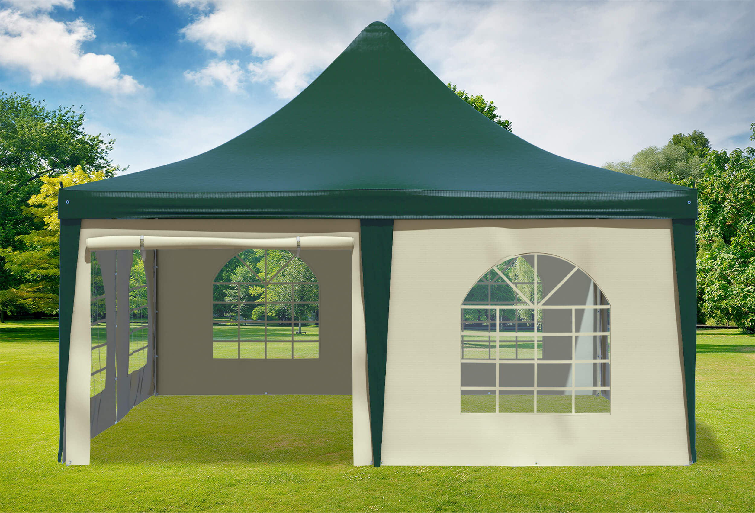 für regelmäßige oder dauerhafte Nutzung Echte 400 g/m² Materialstärke der Dachplane und Seitenteile aus Premium PVC