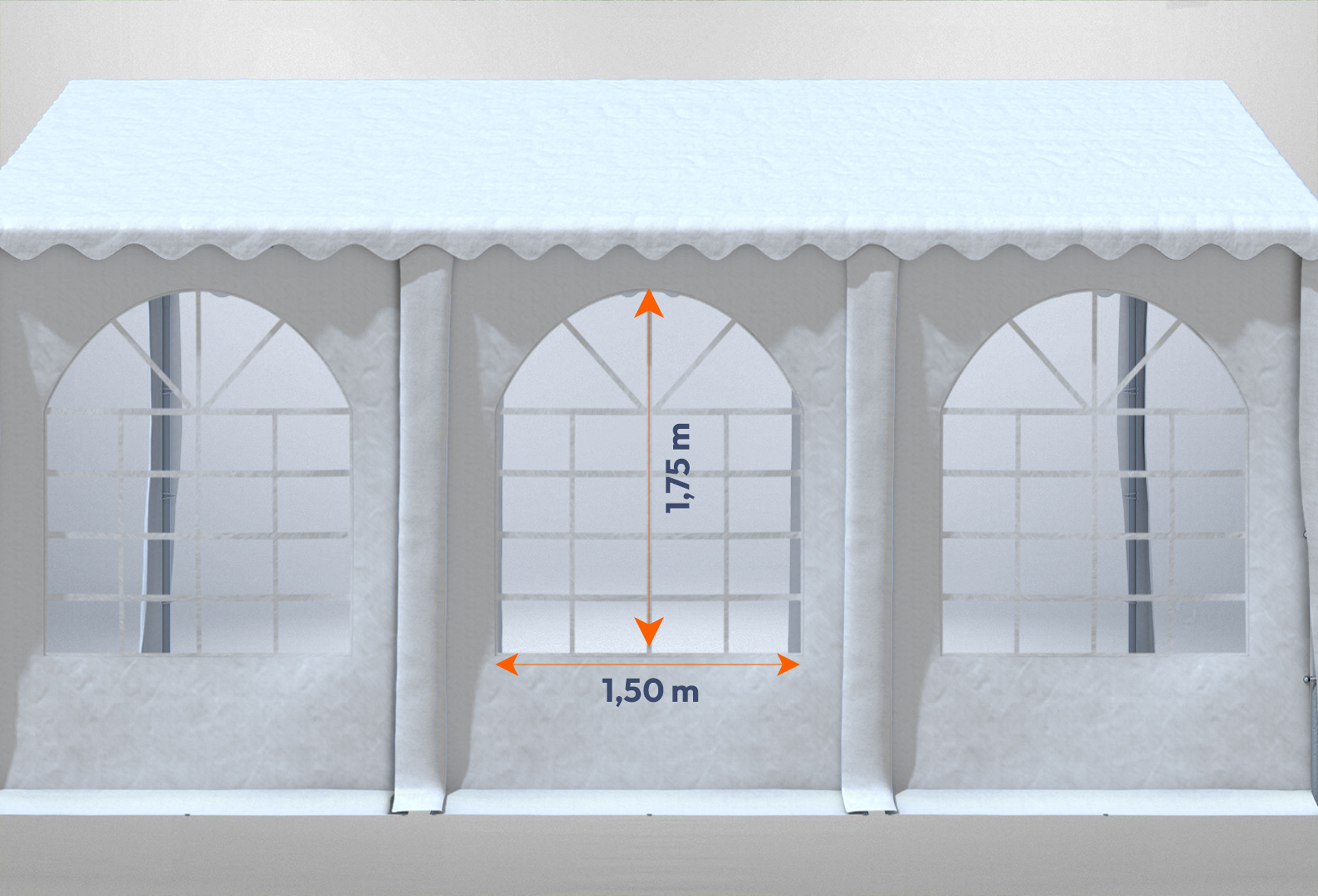 XXL Seitenhöhe 2,6 m mit richtig viel Platz nach obenfür richtige Festzelt-Atmosphäre Standfußstangen nicht verjüngt