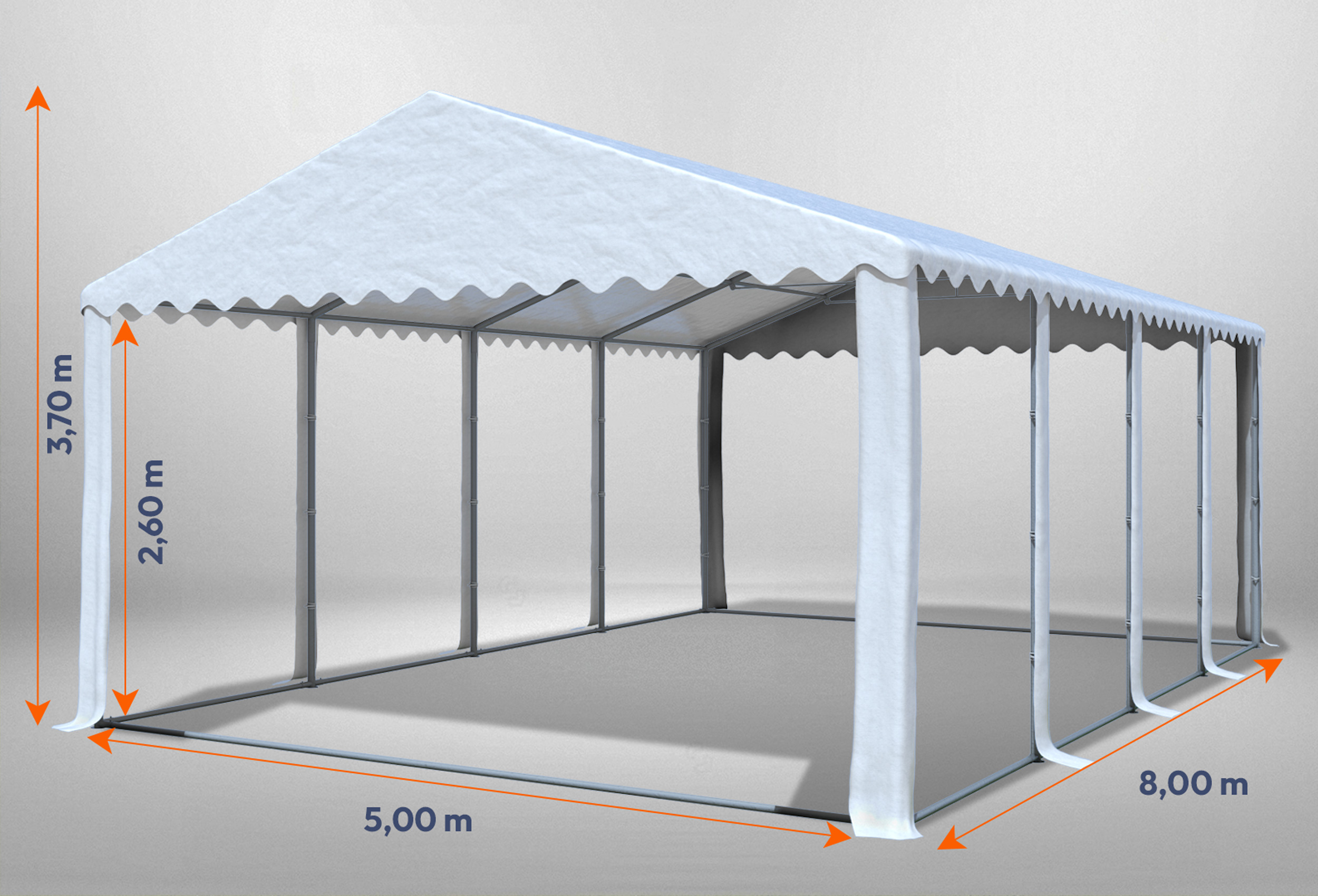 5x8 m Partyzelt, 2,6m Seitenhöhe PVC feuersicher weiß