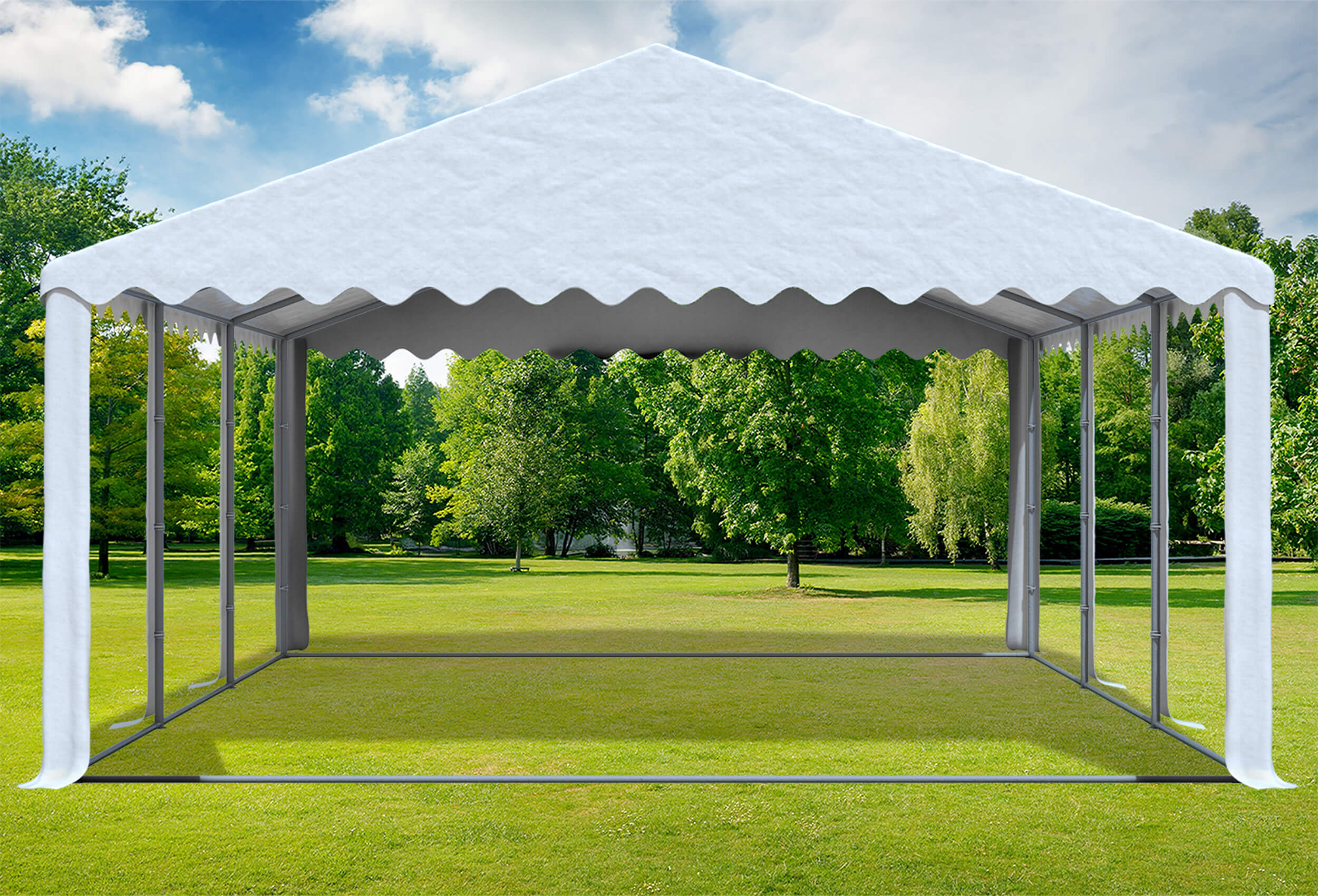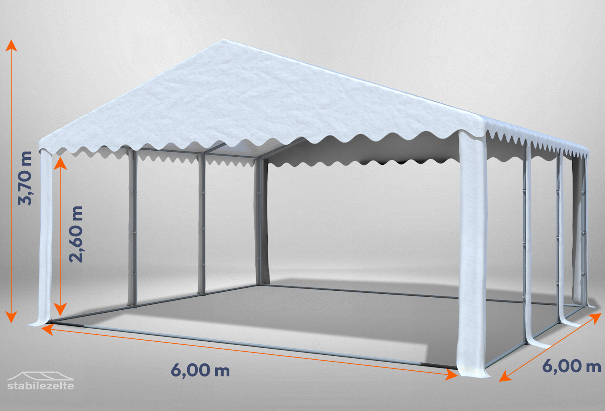 6x6 m Partyzelt, 2,6m Seitenhöhe PVC feuersicher weiß