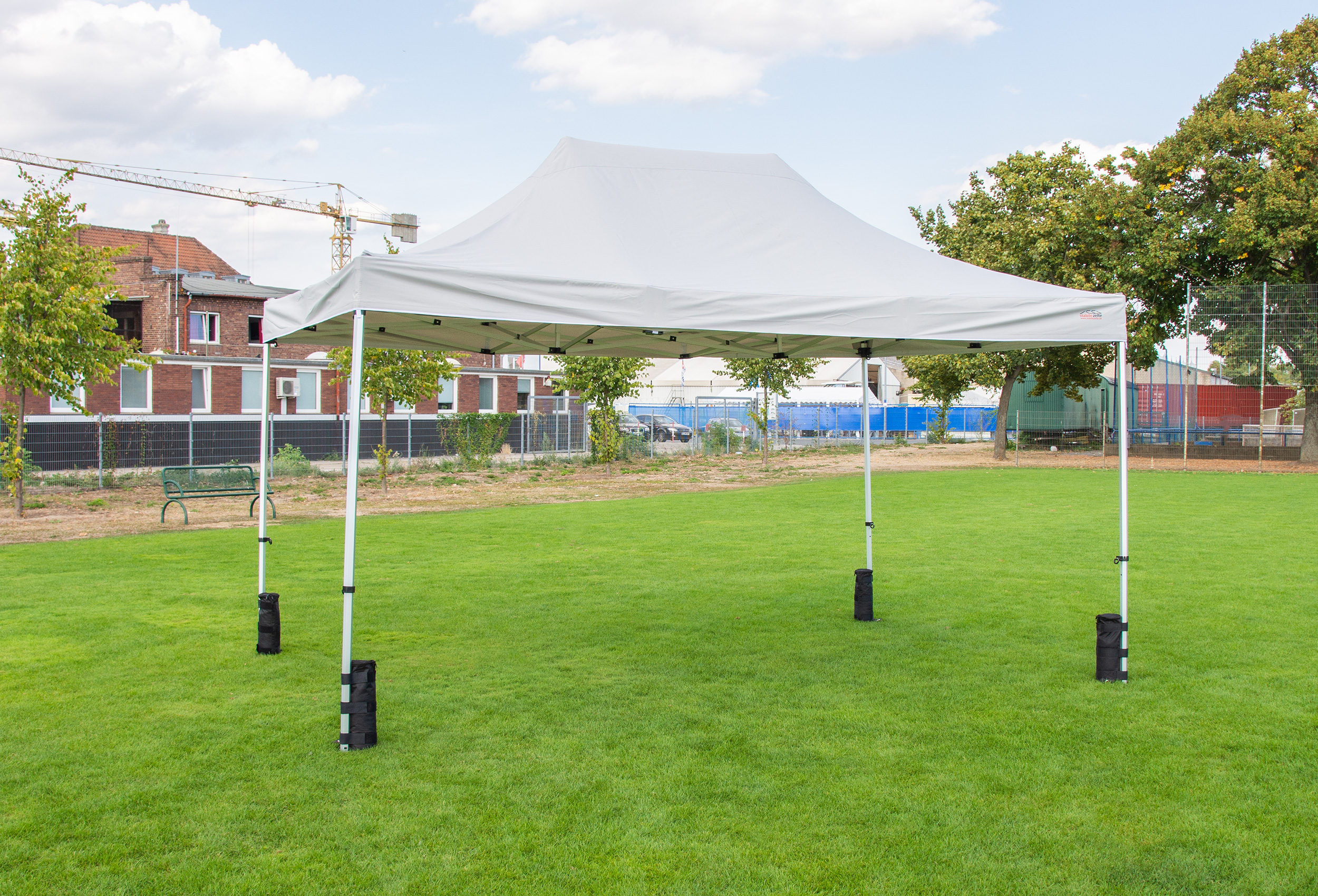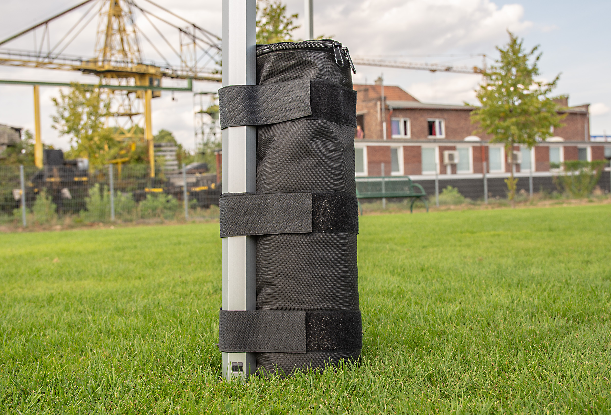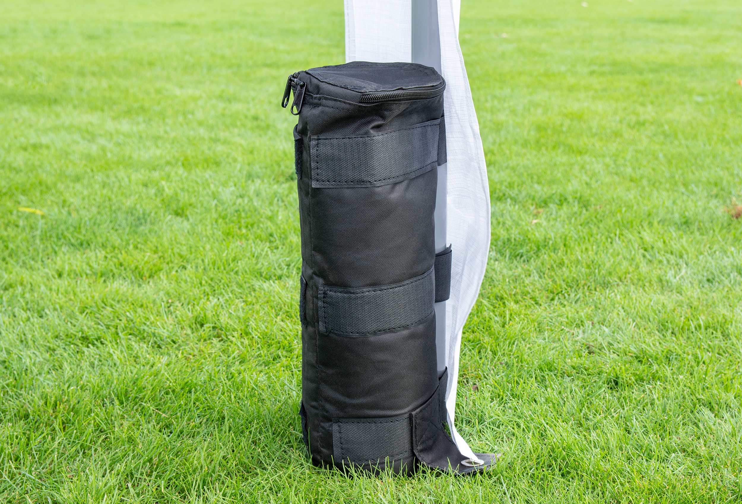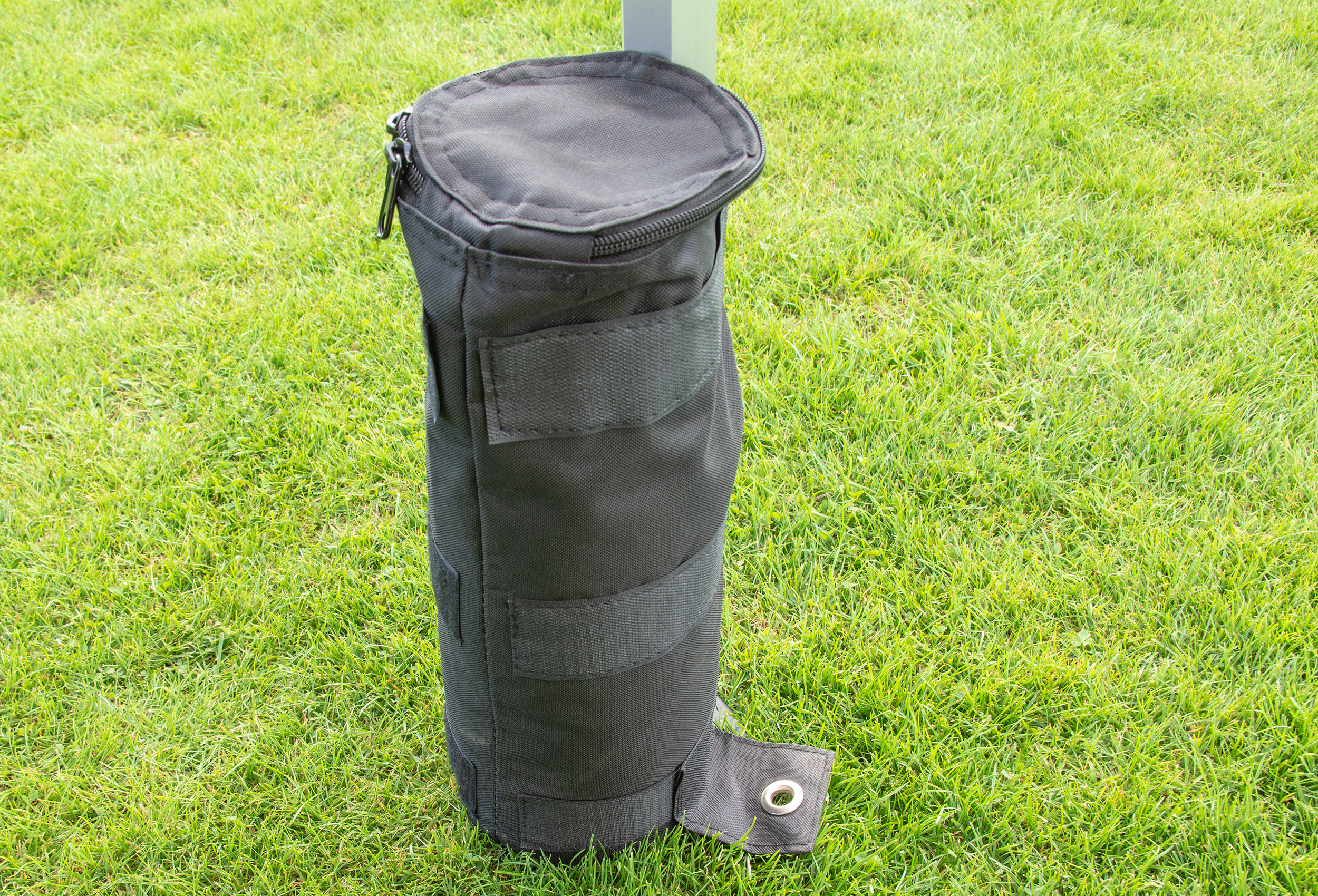 Sie haben keine Möglichkeit Ihr Zelt mit Heringen im Boden zu fixieren? Dann sind die Beschwerungstaschen genau das Richtige für Sie. Einfach die Taschen mittels Klettverschluss an der Standfußstange fixieren und befüllen. Sie können einfach alls was schwer ist reinfüllen. Egal ob Sand, Erde, Steine oder mit Wasser befüllte Flaschen. Sie erreichen ein Maximalgewicht von 10 kg pro Beschwerungstasche.