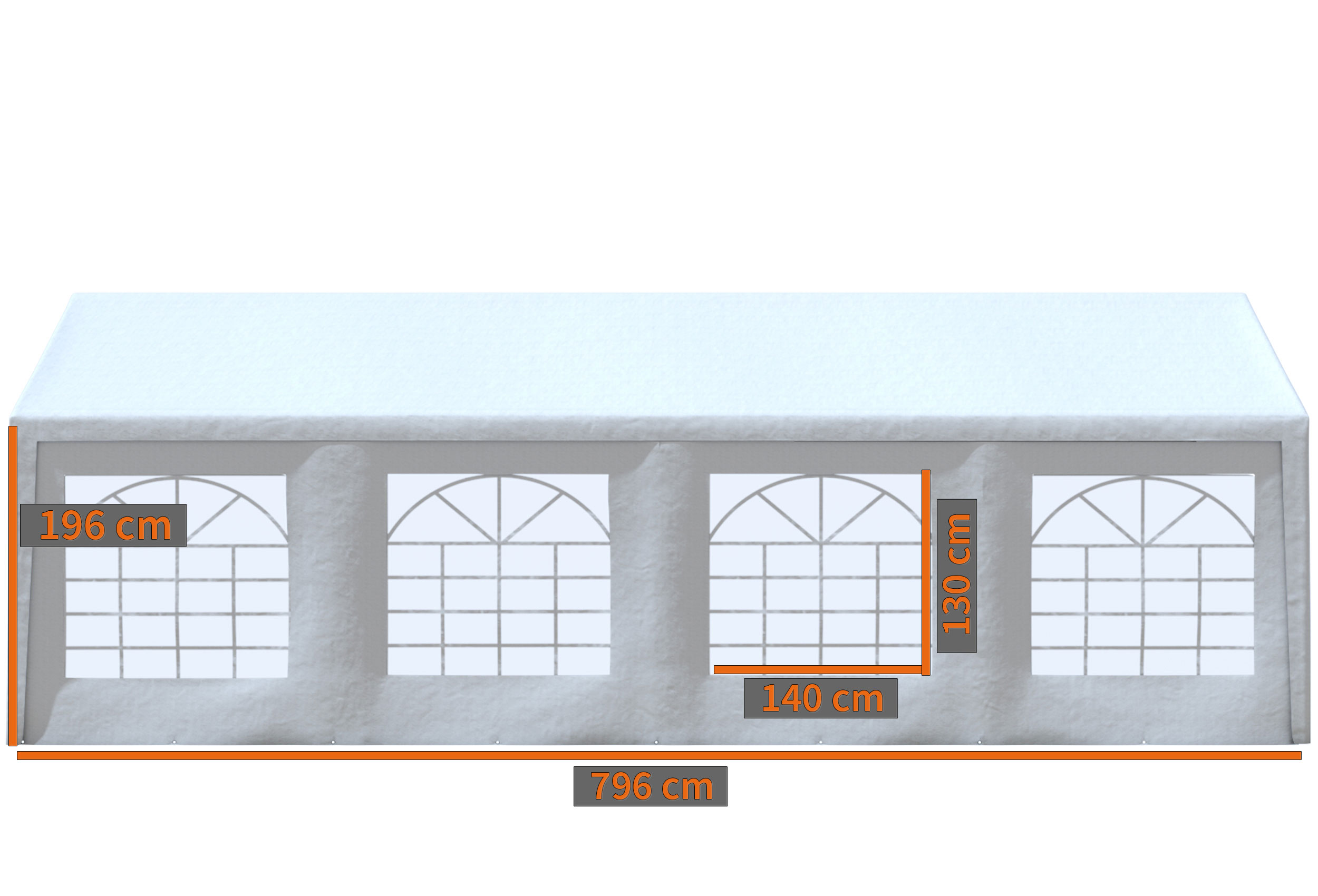 CLASSIC PREMIUM PVC Seitenteil mit Fenster 8 Meter WEISS
