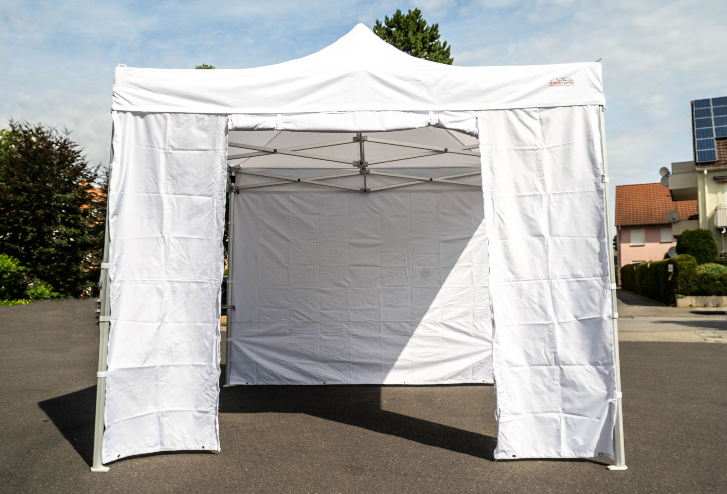 Passende Seitenwände für Ihr stabiles Faltzelt. Erhältlich in 10 verschiedenen Farben sowie 4 verschiedenen Ausführungen. Hochwertig verarbeitetes und 100 % wasserdichtes Pro Polyester PVC. Passgenau für alle unsere Faltzeltmodelle. Professionelle Fixierung mit Industrie-Klett an der Dachplane sowie die Koppelbarkeit per Reißverschluss zeichnen die Seitenteile aus.
