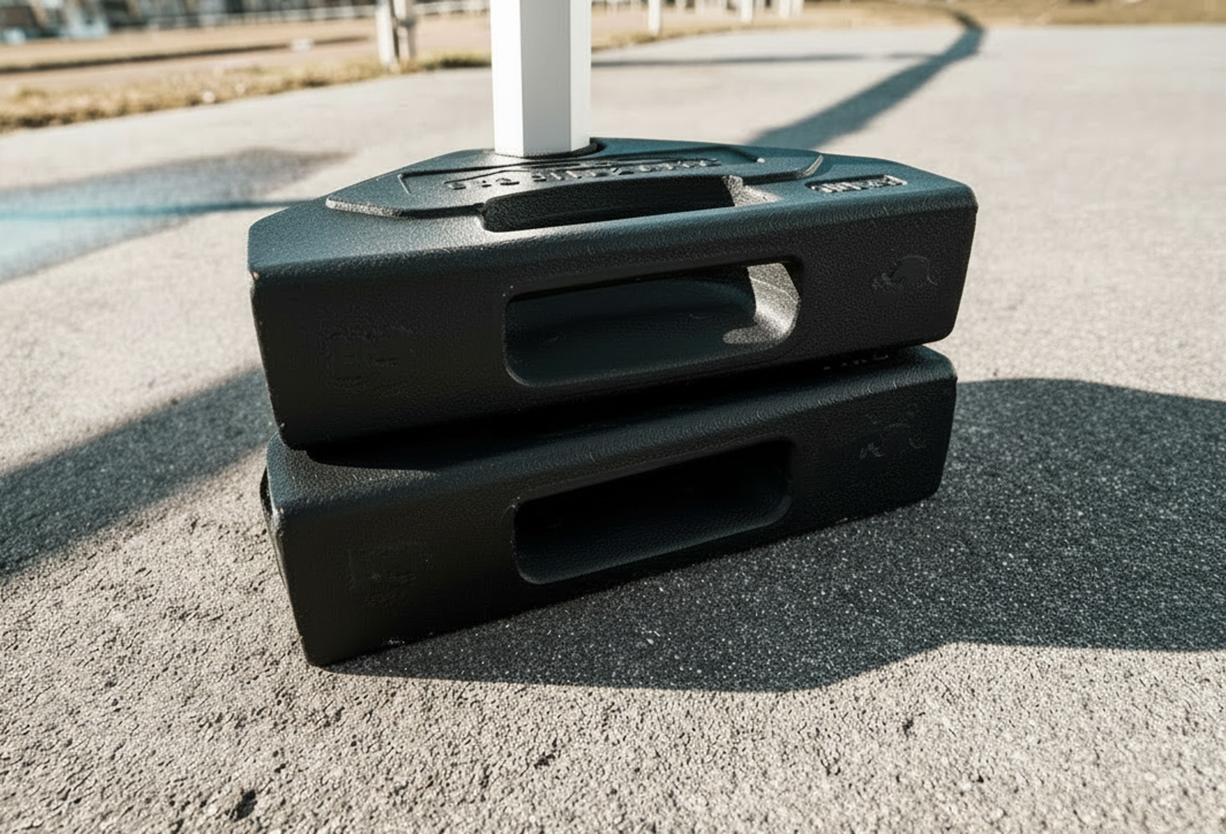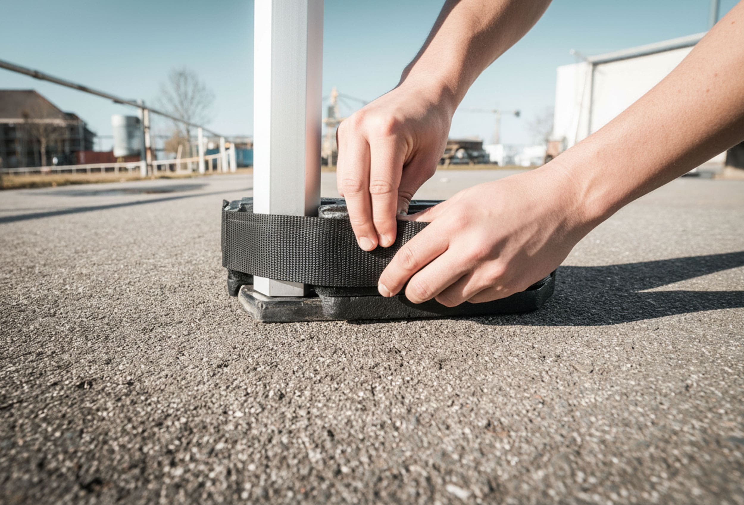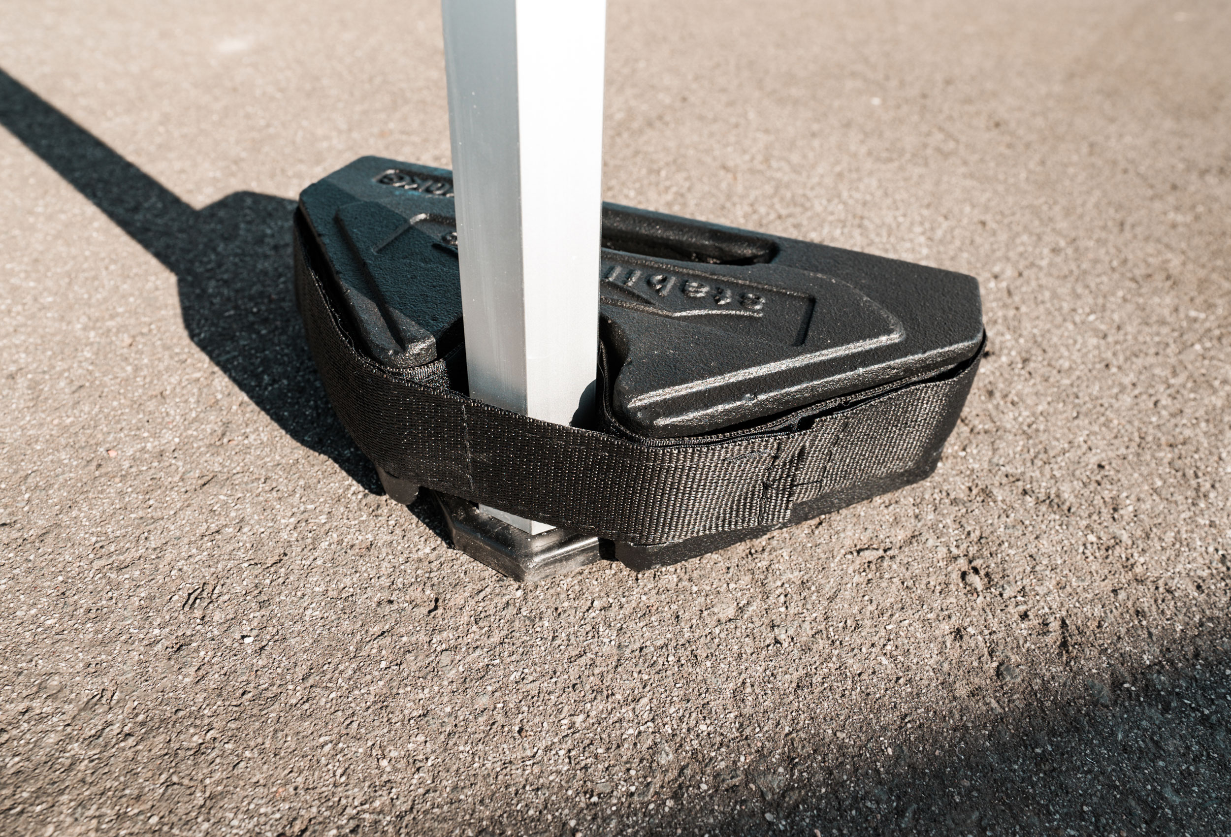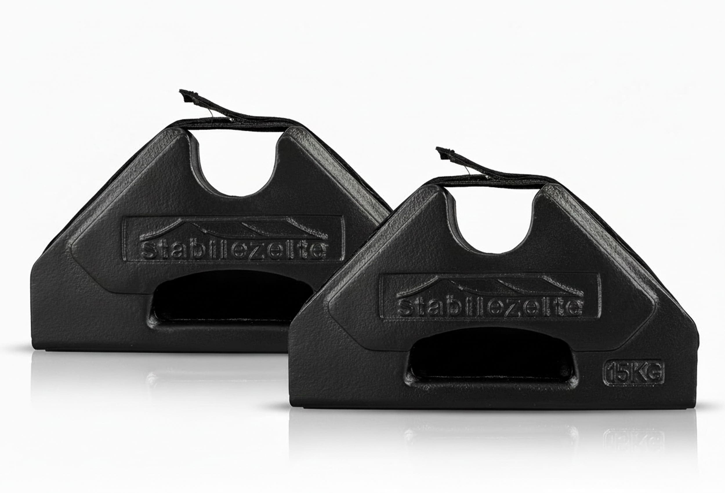Die perfekte Lösung um Ihr Zelt bei festem Untergrund zu beschweren und sichern. Einfach die Gewichtsplatten auf den Fuß Ihres Zeltes stellen und mit Hilfe des Klettverschlusses fixieren.