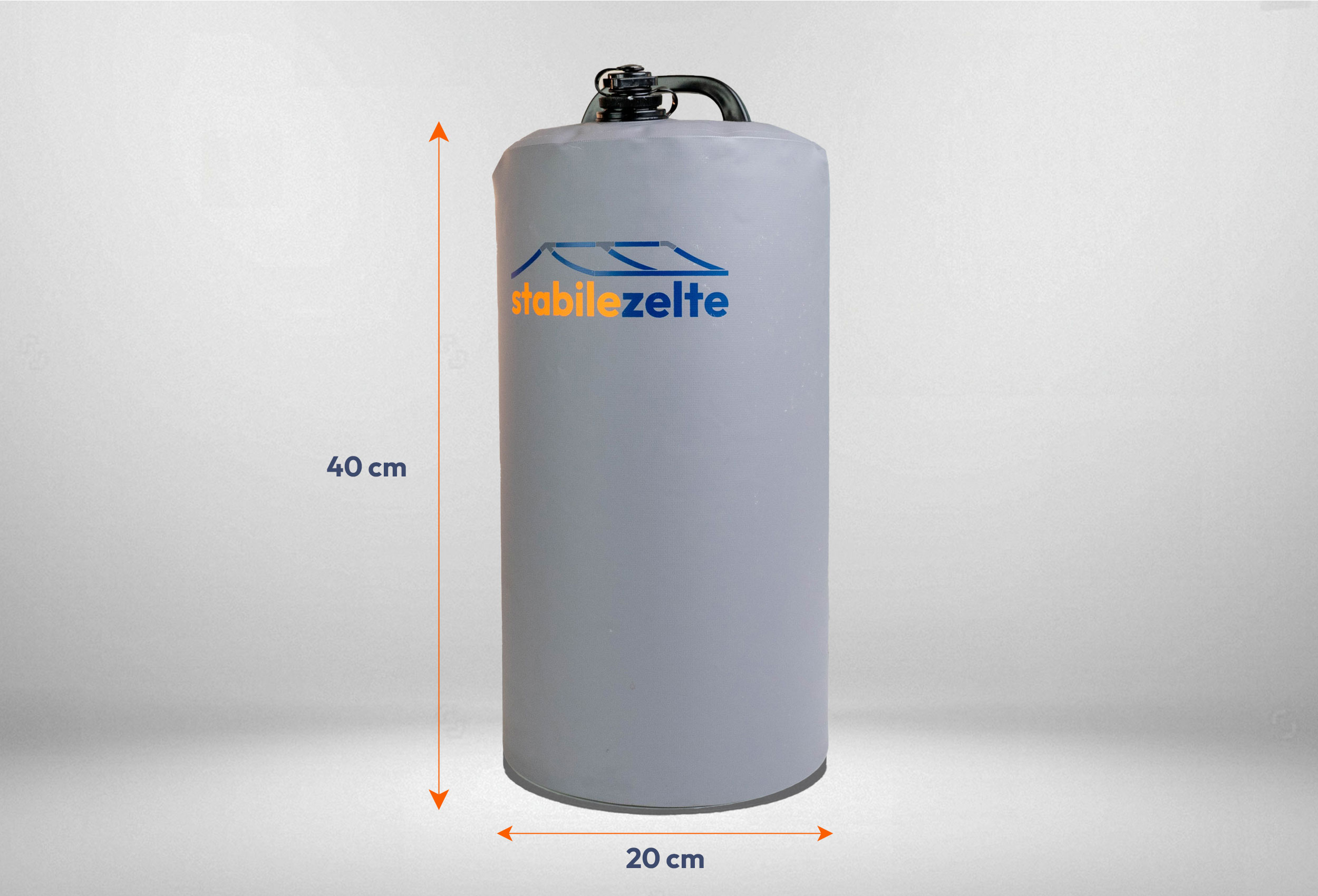 Sie haben keine Möglichkeit Ihr Zelt mit Heringen im Boden zu fixieren? Dann sind die Wassertaschen genau das Richtige für Sie. Einfach die Taschen mit Wasser befüllen und mittels der Klettverschlüsse am Gestänge fixieren. Sie erreichen ein Gewicht von ca. 15 kg pro Beschwerungstasche mit Wasser befüllt.